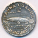 Kuba 1981. 5P Ag ‘Manjuar (Aligátorhal)’ T:1 patina Cuba 1981. 5 Pesos Ag ‘Manjuar (Giant Gar Fish)’ C:UNC patina Krause KM#84