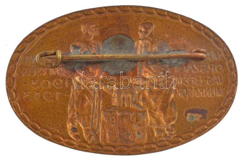 Lányi Dezső (1879-1951) / Klett és Szeiler (vésnöküzem) 1913. ‘Magyarországi Vas- és Fémmunkások Központi Szövetsége 1903-1913’ bronz ovális jelvény (37x57mm) T:1-<a href="https://www.darabanth.com/hu/gyorsarveres/436/kategoriak~Numizmatika/Falerisz