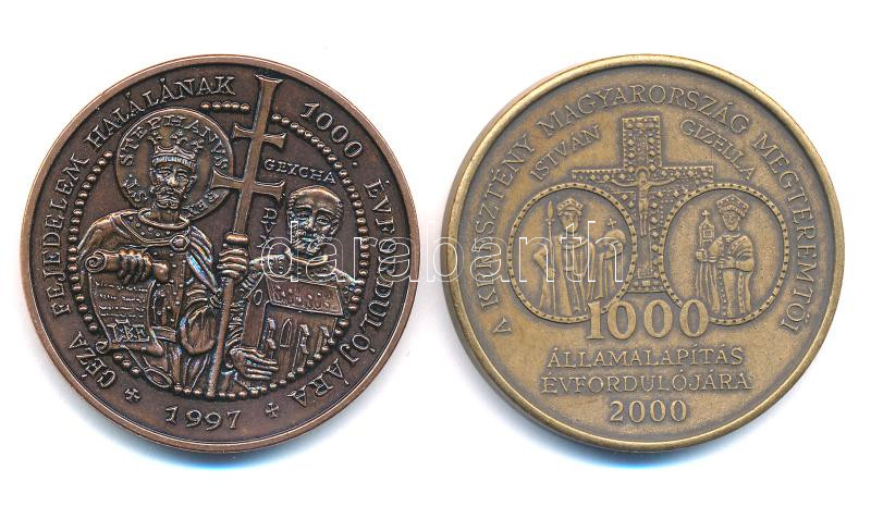 Lebó Ferenc (1960-) 1997. ‘Géza fejedelem halálának 1000. évfordulójára’ bronz emlékérem (42,5mm) + 2000. ‘A keresztény Magyarország megteremtői – István – Gizella – 1000 – Államalapítás évfordulójára / Szt. István