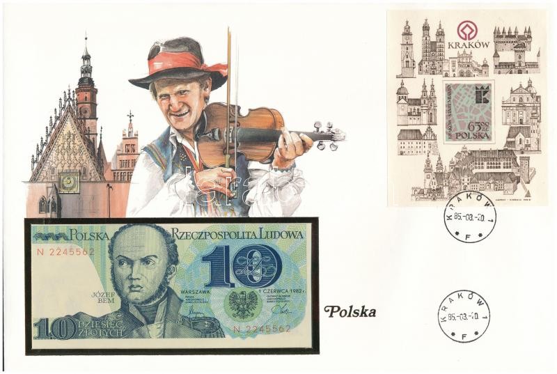 Lengyelország 1982. 10Zl felbélyegzett borítékban, bélyegzéssel T:I Poland 1982. 10 Zlotych in envelope with stamp and cancellation C:UNC<a href="https://www.darabanth.com/hu/gyorsarveres/414/kategoriak~Numizmatika/Ermes-es-bankjegyes-boritekok~200