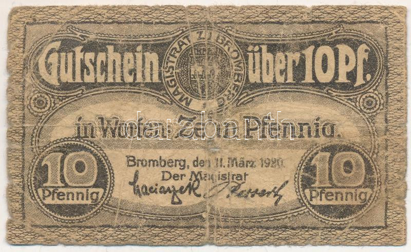 Lengyelország / Bydgoszcz (Bromberg) 1920. 10pf T:III- Poland / Bydgoszcz (Bromberg) 1920. 10 Pfennig C:VG