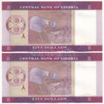 Libéria 2016. 5$ (2x) sorszámkövetők ‘AA9370433 – AA9370434’ T:I Liberia 2016. 5 Dollars (2x) consecutive serials ‘AA9370433 – AA9370434’ C:UNC