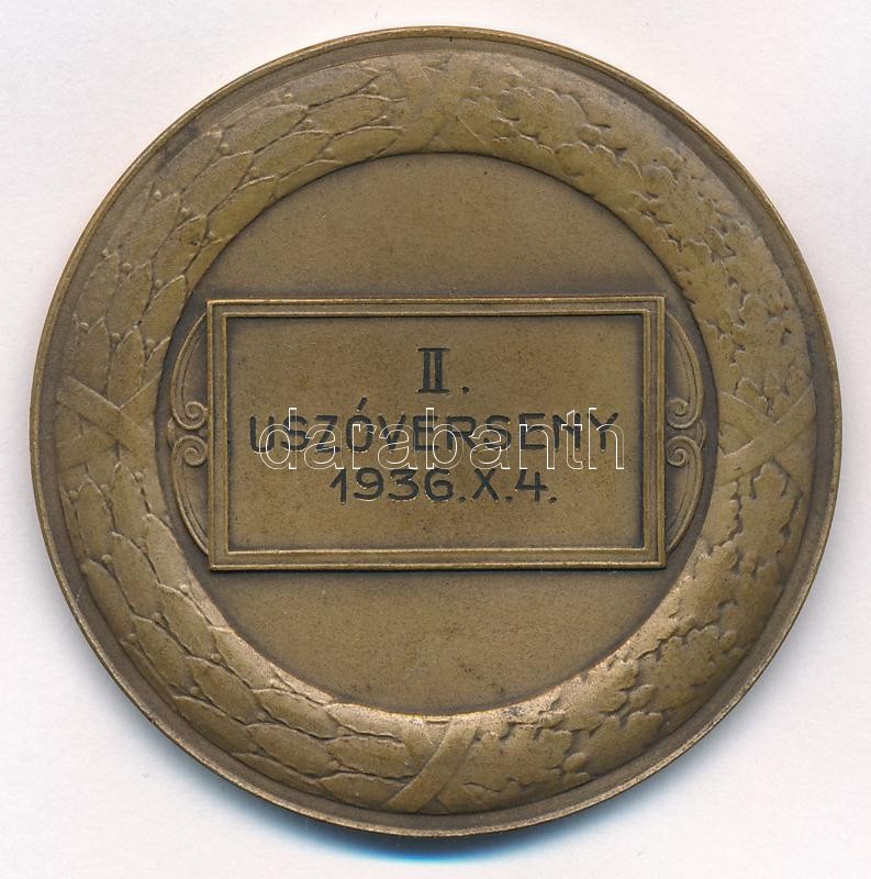 Ligeti Miklós (1871-1944) 1931/1936. ‘Pesti Magyar Kereskedelmi Bank T.S.E. – 1911-1931’ kétoldalas bronz díjérem, hátoldalon gravírozva ‘II. Úszóverseny 1936. X.4.’ (50mm) T:2 patina, ph<a href="https://www.darabanth.com/hu/gyorsarveres/423/kategor