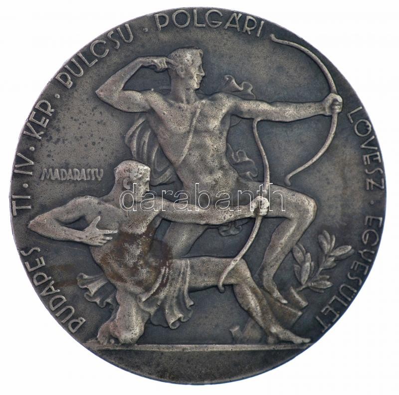 Madarassy Walter (1909-1994) 1941. ‘Budapest IV. Kerületi Bulcsu Polgári Lövész Egyesület / Bajnokság’ peremen jelzett Ag emlékérem (26,97g/0.987/40mm) T:2 patina, hátlapon felületi karc<a href="https://www.darabanth.com/hu/gyorsarveres/412/kategori