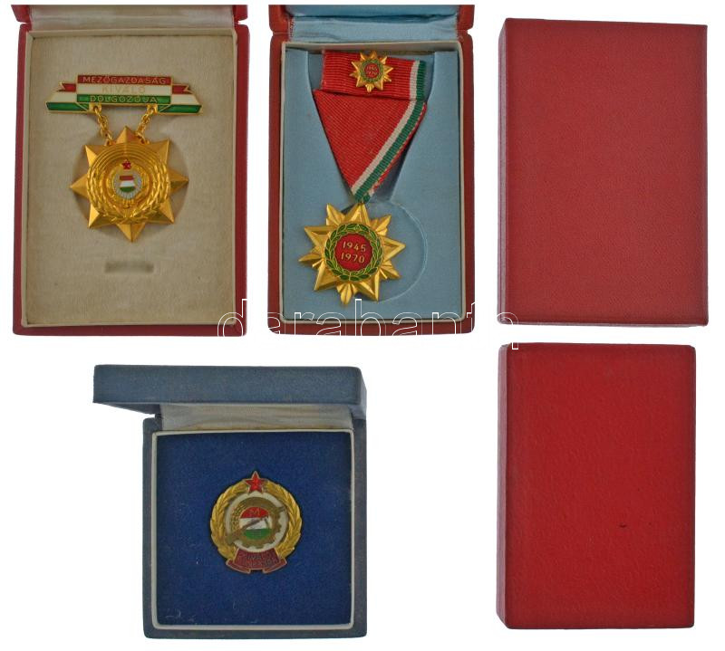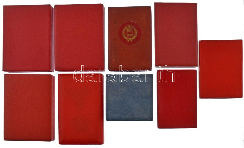 Magyar Szocialista kitüntetés tétel. 7xklf kitüntetés dobozban, közte ‘Mezőgazdaság kiváló dolgozója’,’Kiváló munkásőr’,’Felszabadulási Jubileumi Emlékérem’ + 2xklf kitüntetés tok + 3xklf viselési igazolvány + ‘Kitüntetések