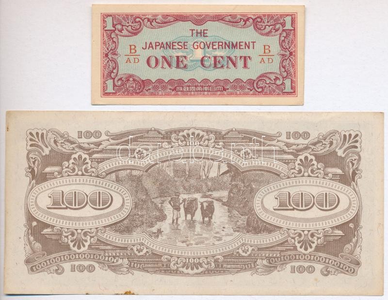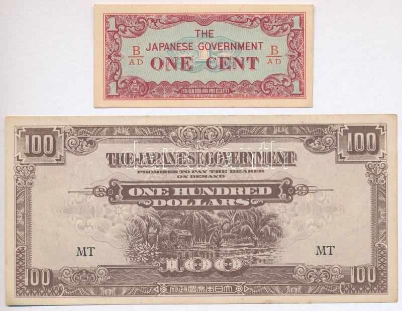 Malaja / Japán megszállás 1942. 1c + 1944. 100$ ‘MT’ T:I-,II fo. Malaya / Japanese occupation 1942. 1 Cent + 1944. 100 Dollars ‘MT’ C:AU,XF spotted Krause P#M1b, P#M8b<a href="https://www.darabanth.com/hu/gyorsarveres/409/kategoriak~Numizmatika/Kulf