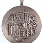 Malajzia DN ‘Üdvözlet Malajziából’ kétoldalas fém érem láncon, eredeti ‘Royal Selangor’ tokban (38mm) T:1,1- Malaysia DN ‘Greetings from Malaysia’ two-sided metal medallion on chain, in original ‘Royal Selangor’ case (38mm) C:UNC,AU