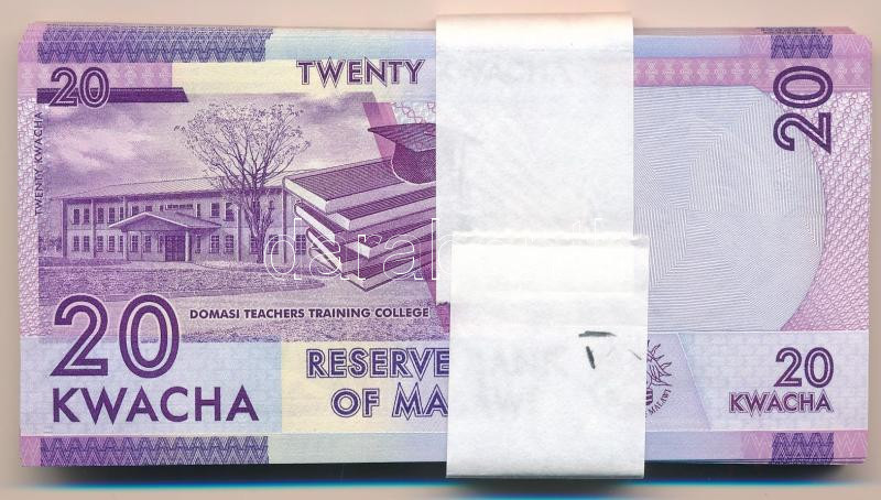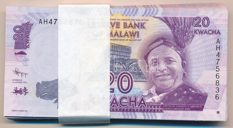 Malawi 2012. 20K (64x) sorszámkövetők, kötegelővel T:I Malawi 2012. 20 Kwacha (64x) consecutive serials with currency strap C:UNC Krause P#57<a href="https://www.darabanth.com/hu/gyorsarveres/432/kategoriak~Numizmatika/Kulfoldi-bankjegyek~1500014/Ma