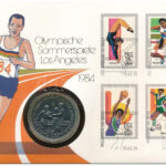 Man-sziget 1984. 1C Cu-Ni ‘XXIII. Olimpia Los Angeles’ bélyeges borítékban, bélyeggel és bélyegzéssel T:UNC,AU Isle of Man 1984. 1 Crown Cu-Ni ‘Twenty-third Olympiad Los Angeles’ in coin envelope with stamps and cancellations C:UNC,AU Krause KM#118