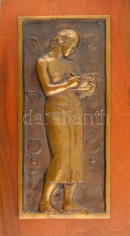Martsa István (1912-1978) 1956. ‘Író nő’ bronz plakett jelzés nélkül, falemezre erősítve, 33×15 cm T:1<a href="https://www.darabanth.com/hu/gyorsarveres/432/kategoriak~Numizmatika/Magyar-emlekveretek-plakettek~1500009/Martsa-Istvan-1912-1978-1956-Ir