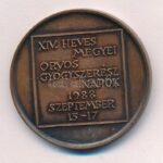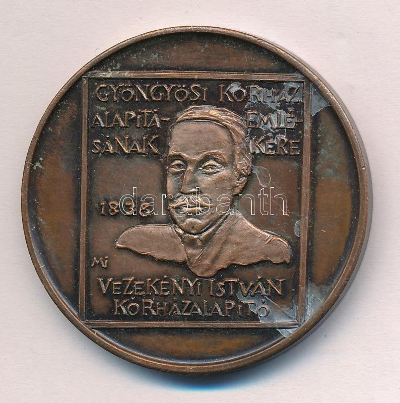 Máté István (1952-) 1988. ‘A Gyöngyösi Kórház alapításának emlékére, Vezekényi István kórházalapító / XIV. Heves Megyei Orvos Gyógyszerész Napok’ kétoldalas Br emlékérem (42,5mm) T:1- patina<a href="https://www.darabanth.com/hu/gyorsarveres/422/kate