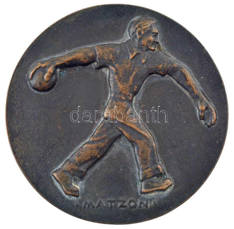 Matzon Frigyes (1909-1986) 1947. ‘Budapesti Tekéző Alszövetség’ kétoldalas bronz díjérem ‘8-as bajn. 1947 II.’ gravírozással (58mm) T:2