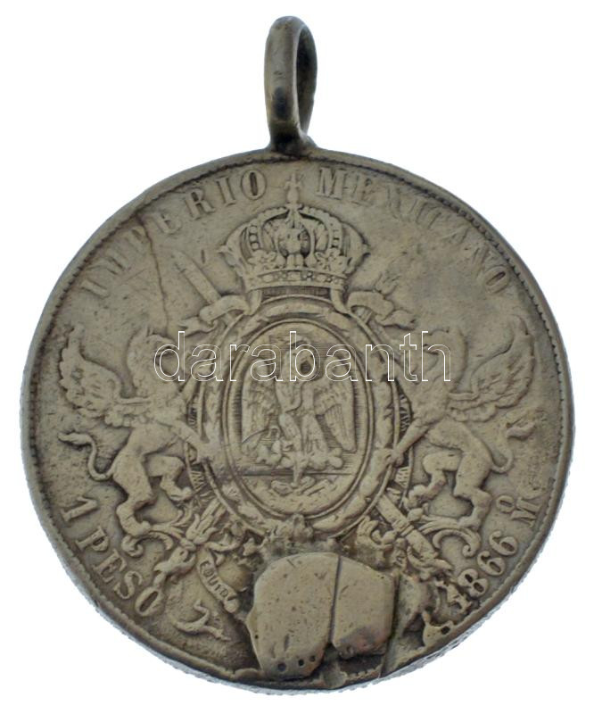 Mexikó 1866Mo 1P Ag ‘Miksa’ (26,70g) T:VG füllel, forrasztásnyom Mexico 1866Mo 1 Peso ‘Maximilian’ (26,70g) C:VG with ear, soldering trace Krause KM#388<a href="https://www.darabanth.com/hu/gyorsarveres/438/kategoriak~Numizmatika/Kulfoldi-fem-es-ezu