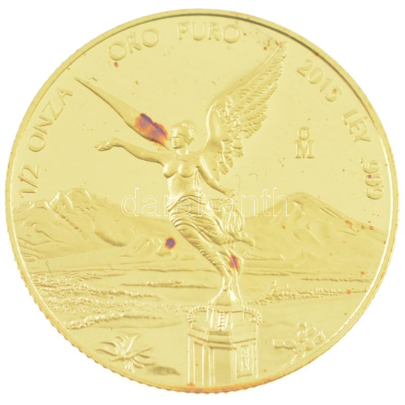 Mexikó 2015. 1/2O Au (15,53g/0.999) T:PP fo. Mexico 2015. 1/2 Ounza Au (15,53g/0.999) C:PP spotted Krause KM#674<a href="https://www.darabanth.com/hu/gyorsarveres/433/kategoriak~Numizmatika/Magyar-es-kulfoldi-aranypenzek-es-emlekveretek~2000009/Mexi