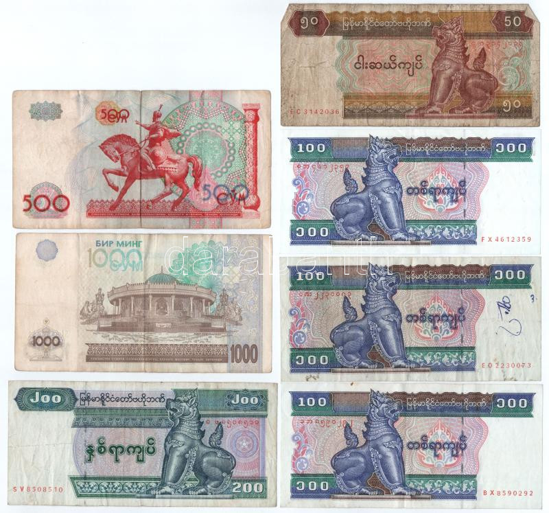 Mianmar 1994-1997. 50K + 1994-1996. 100K (3x) + 2004. 200K + Üzbegisztán 1999. 500S + 2001. 1000S T:III közte kis szakadás Myanmar 1994-1997. 50 Kyats + 1994-1996. 1000 Kyats (3x) + 2004. 200 Kyats + Uzbekistan 1999. 500 S’om + 2001. 1000 S’om