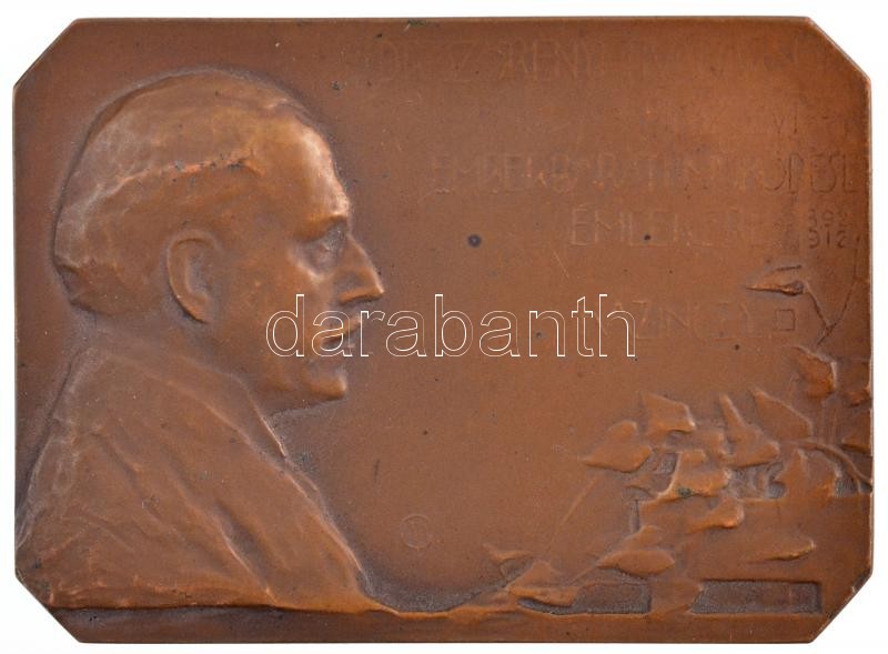 Moiret Ödön (1883-1966) 1912. ‘Dr. Szörényi Tivadarnak – húsz évi – emberbaráti működése emlékére 1892-1912 – Kazinczy’ egyoldalas Br emlékplakett (50x70mm) T:2,2- patina / Hungary 1912. For Dr. Tivadar Szörényi – twenty years – in