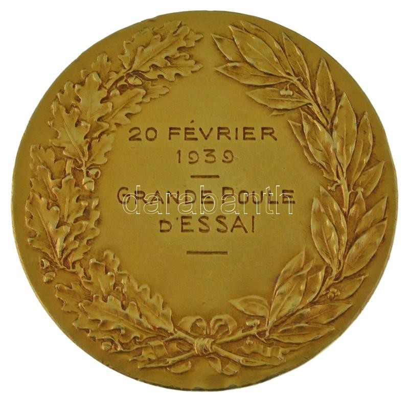 Monaco 1939. „Monaco-i galamblövészet” kétoldalas, peremén jelzett Au emlékérem, hátoldalán „20 Février 1939 – Grande Poule d’Essai” gravírozással, „OR” anyagjelzéssel (22,48g/0.585/36mm) T:AU,XF ph. Monaco 1939. „Tir Aux Pigeons de Monaco” double-sided,