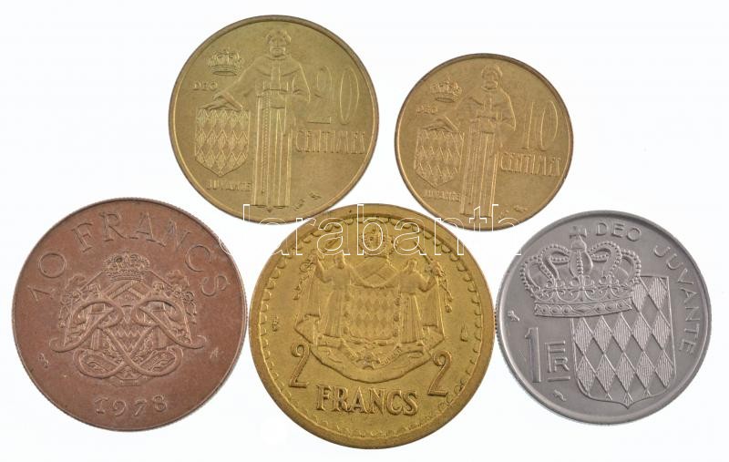 Monaco 1945-1978. 10c-10Fr (5xklf) T:1-,2 patina, kis ph, karc Monaco 1945-1978. 10 Centimes – 10 Francs (5xdiff) C:AU,XF patina, small edge error, scratch