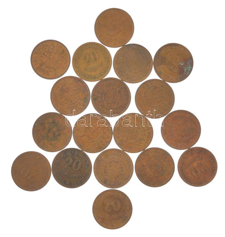 Mozambik 1973. 20c bronz (3x) + 1974. 20c bronz (15x) T:XF,VF Mozambique 1973. 20 Centavos bronze (3x) 1974. 20 Centavos bronze (15x) C:XF,VF<a href="https://www.darabanth.com/hu/gyorsarveres/438/kategoriak~Numizmatika/Kulfoldi-fem-es-ezustpenzek~15