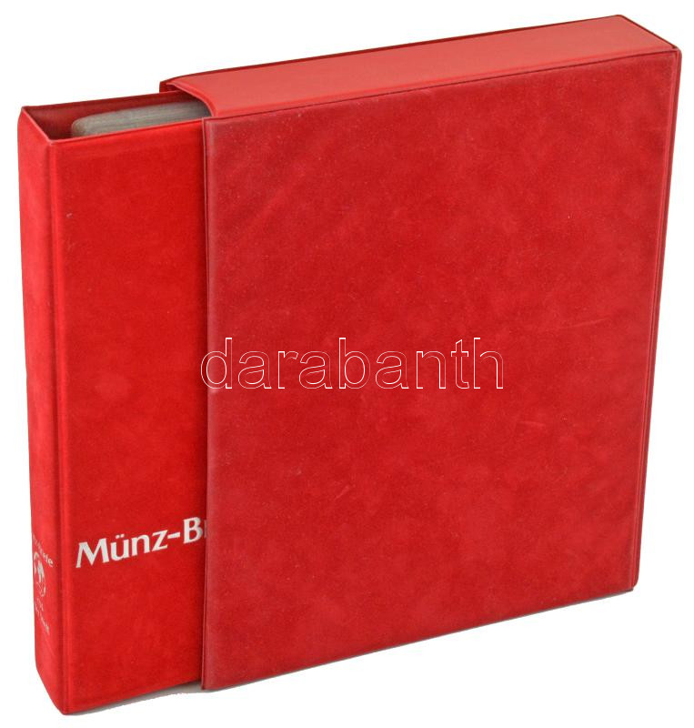 ‘Münz Briefe aus aller Welt’ piros, plüssborítású, négygyűrűs album, 30db kettes osztású berakólappal. Használt, jó állapotban