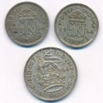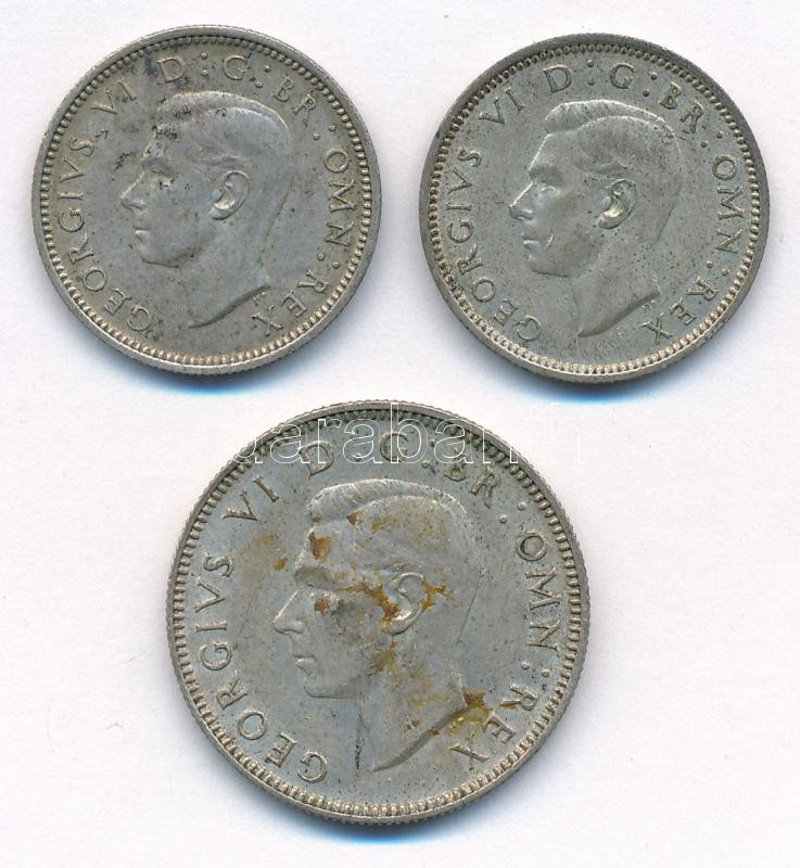 Nagy-Britannia 1944. 6p Ag ‘VI. György’ (2x) + 1Sh Ag ‘VI. György’ T:2,2- patina United Kingdom 1944. 6 Pence Ag ‘George VI’ (2x) + 1 Shilling Ag ‘George VI’ C:XF,VF patina Krause KM#852, KM#853