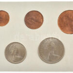 Nagy-Britannia 1968-1971. 1/2p-10P (5xklf) ‘Nagy-Britannia első decimális érméi’ forgalmi összeállítás kartonlapon, leírással, eredeti műanyag tokban T:1,1- patina Great Britain 1968-1971. 1/2 Penny – 10 New Pence (5xdiff) ‘Britain’s first Decimal Coins’