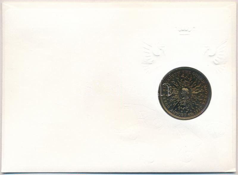 Nagy-Britannia 1980. 25p Cu-Ni ‘Erzsébet anyakirályné 80. születésnapja’ érmés borítékban, bélyeggel és bélyegzéssel T:1,1- Great Britain 1980. 25 Pence Cu-Ni ’80th birthday of Queen Elizabeth the Queen Mother’ in coin envelope with