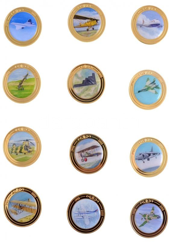 Nagy-Britannia 2003. ‘Century of Flight (A repülés évszázada)’ egyik oldalán multicolor festett, aranyozott fém emlékérem szett (24xklf) ‘WESTMINSTER’ feliratú dísztokban (38mm) T:1<a href="https://www.darabanth.com/hu/gyorsarveres/426/kategoriak~Nu