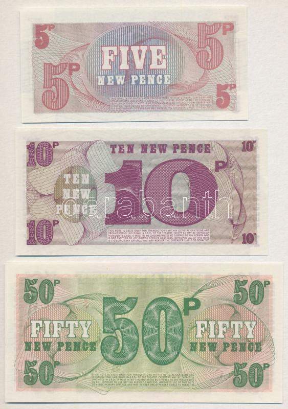 Nagy-Britannia / Katonai kiadás 1972. 5p + 10p + 50P ‘6. sorozat’ T:I Great Britain / British Armed Forces 1972. 5 Pence + 10 Pence + 50 Pence ‘6th series’ C:UNC Krause M44, M45, M46<a href="https://www.darabanth.com/hu/gyorsarveres/435/kategoriak