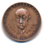 Nagy István János (1938-) 1991. ‘Gróf Teleki Pál – 1879-1941 – A magyar nép mártírja / ‘Nőttön nő tiszta fénye, amint időben, térben távozik – MÉE 1991’ bronz emlékérem (42,5mm) T:AU Adamo BP35<a href="https://www.darabanth.com/hu/gyorsarveres/439/k
