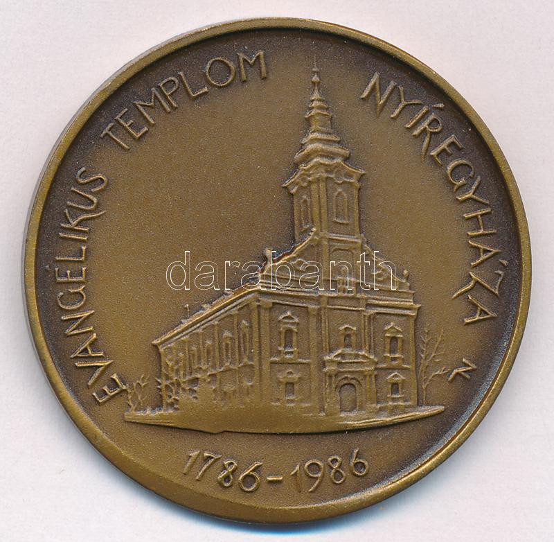 Nagy Lajos (1949-) 1986. ‘Evangélikus Templom – Nyíregyháza / Deo Optimo Maximo Favente Auxiliante’ bronz emlékérem (technológiai hibás veret: lapkavég?) (42,5mm) T:1-<a href="https://www.darabanth.com/hu/gyorsarveres/438/kategoriak~Numizmatika/Magy