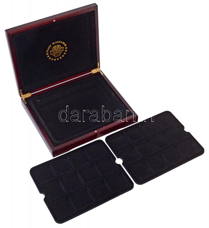 ‘Nagy Magyarok’ emlékérem sorozathoz készült díszdoboz, két darab 12 férőhelyes kivehető tálcával. Használt, de jó állapotban.