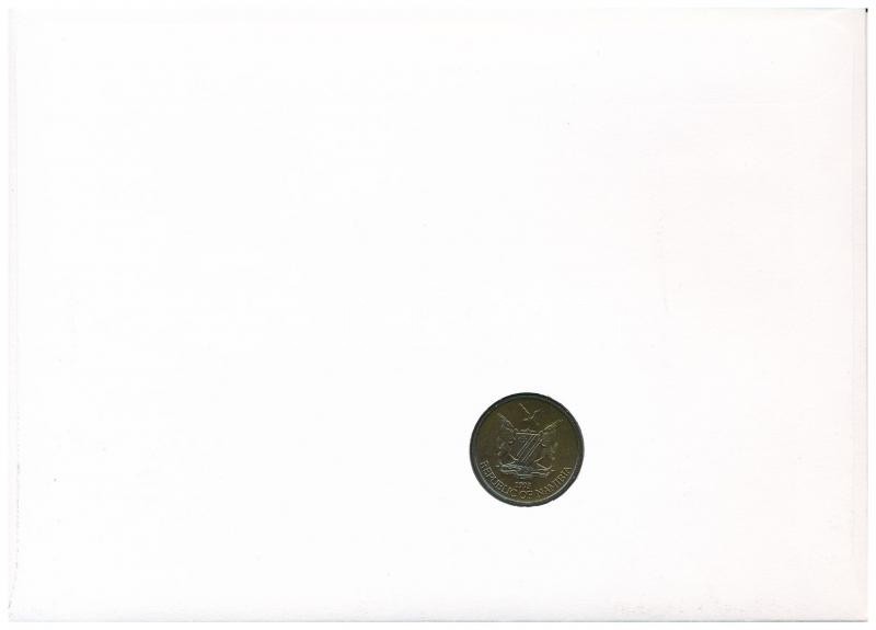 Namíbia 1993. 1D felbélyegzett borítékban, bélyegzéssel, német nyelvű leírással T:1 Namibia 1993. 1 Dollar in envelope with stamp and cancellation, with German description C:UNC<a href="https://www.darabanth.com/hu/gyorsarveres/423/kategoriak~Numizm