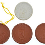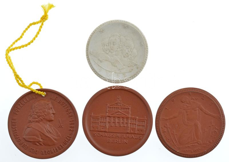 NDK 4 db Meisseni kerámia és porcelán emlékérem: Berlin színház,. J. F. Böttger, 1922 Thomaskirche, 1923 Háborús emlékmű Meissen.(kb 36 mm) T: UNC, EF / GDR 4 Meissen porcelain and ceramic commemorative coins<a href="https://www.darabanth.com/hu/gyo