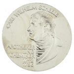 NDK DN ‘Carl Wilhelm Scheele gyógyszerész és kémikus 1742-1786 / Szülőháza Stralsundban’ Ni kétoldalas emlékérem (32mm) eredeti tokban T:BU NDK ND ‘Carl Wilhelm Scheele Apotheker und Chemiker 1742-1786 / Geburtshaus Stralsund’ Ni
