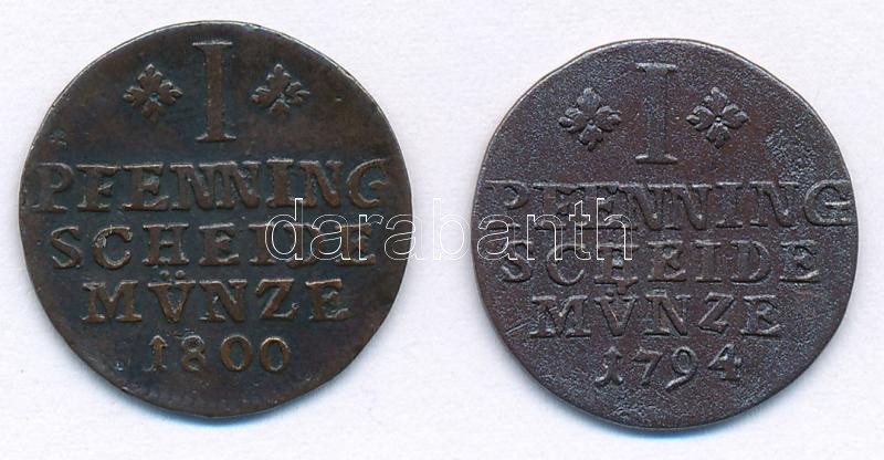 Német Államok / Brunswick-Wolfenbuttel 1794MC 1pf Cu + 1800MC 1pf Cu T:2- German States / Brunswick-Wolfenbuttel 1794MC 1 Pfennig Cu + 1800MC 1 Pfennig Cu C:VF Krause KM# 995<a href="https://www.darabanth.com/hu/gyorsarveres/433/kategoriak~Numizmati