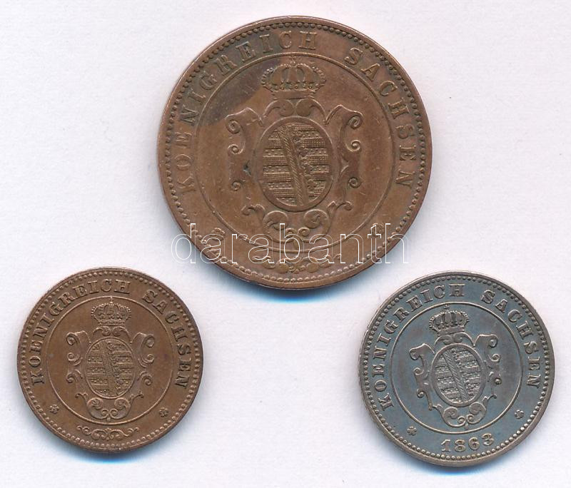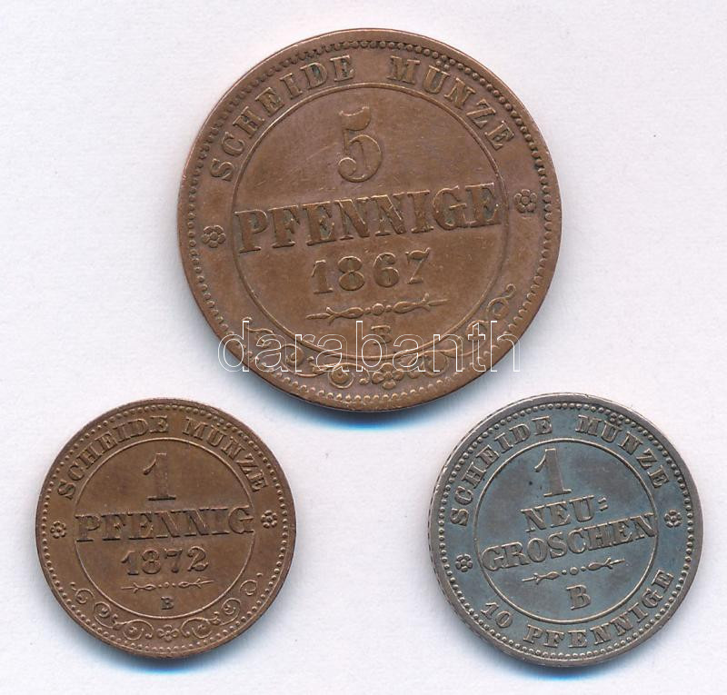 Német Államok / Szászország-Albertin 1863B 1gr Ag + 1867B 5pf Cu + 1872B 1pf Cu T:1-,2 German States / Saxony-Albertine 1863B 1 Neu Groschen Ag + 1867B 5 Pfennig Cu + 1872B1 Pfennig Cu C:AU,XF Krause KM# 1219, KM# 480, KM# 1216<a href="https://www.d