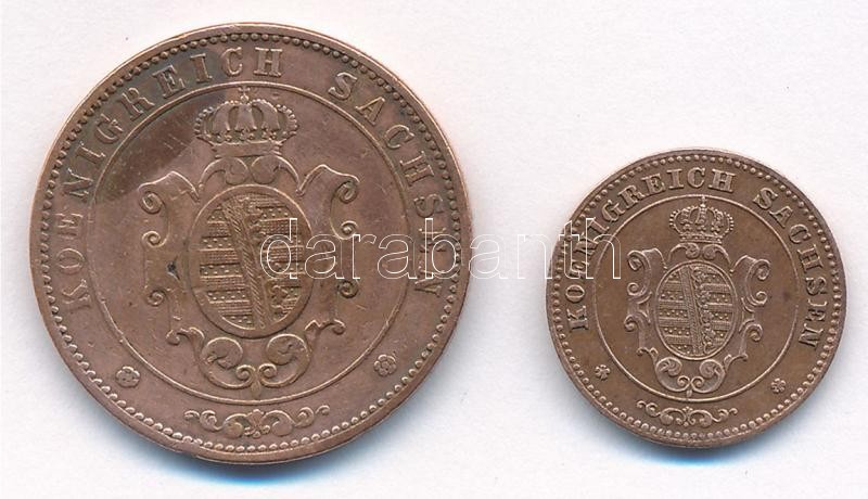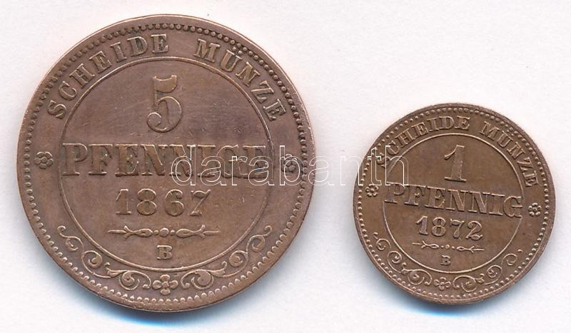 Német Államok / Szászország – Albertine 1867B 5pf Cu + 1872B 1pf Cu T:2,2- patina, kis ph German States / Saxony – Albertine 1867B 5 Pfennige Cu + 1872B 1 Pfennig Cu C:XF,VF patina, small edge error Krause KM#1218, #1216<a href="https://www.darabant