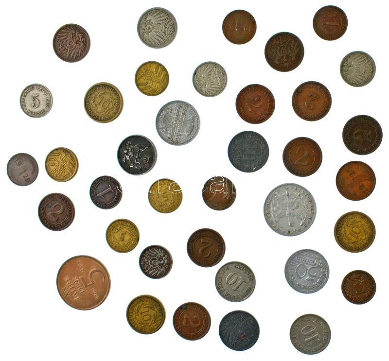 Német Birodalom 1901-1908. 2pf-5pf (3xklf) + 1923A 500M Al + 1924-1929. 1pf-2pf bronz (3xklf) + Német Harmadik Birodalom 1935-1944. 1pf-50pf (13xklf) T:2-3 German Empire 1901-1908. 2 Pfennig – 5 Pfennig (3xdiff) + 1923A 500 Mark Al + 1924-1929. 1 Reichspf