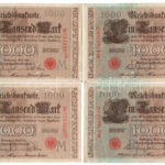 Német Birodalom 1910. 1000M piros pecsét, hétjegyű sorszám (4x) + 1922. 10.000M + 1923. 2M + 1923. 20.000M T:II–IV German Empire 1910. 1000 Mark red seal, 7 digit serials (4x) + 1922. 10.000 Mark + 1923. 2 Mark + 1923. 20.000 Mark C:VF-G<a href="h
