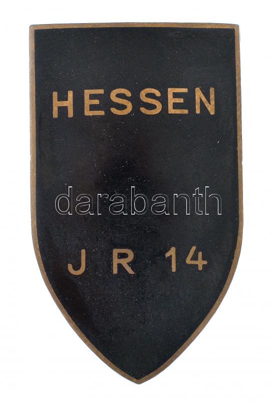 Német Birodalom ~1914-1918. ‘Hessen I R 14’ a 14. Hesseni Gyalogezred zománcozott sapkajelvénye (35x21mm) T:1-,2 German Empire ~1914-1918. ‘Hessen I R 14’ enamelled bronze cap badge of the 14th Hessen Infantry Regiment (35x21mm) C:AU,XF<a href="http