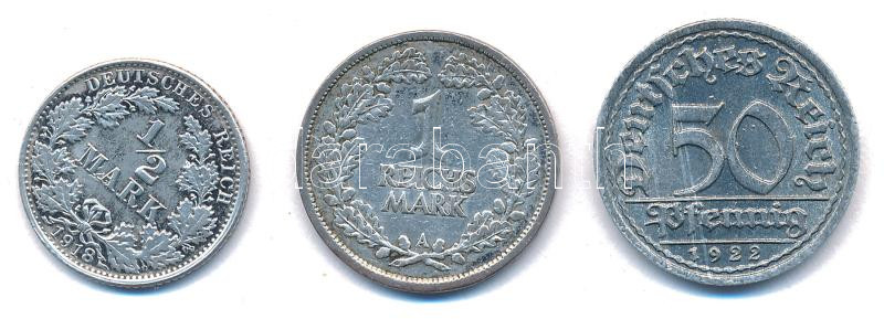 Német Birodalom 1918G 1/2M Ag + Németország / Weimar Köztársaság 1922F 50pf Al + 1925A 1M Ag T:AU-VF German Empire 1918G 1/2 Mark Ag + Germany / Weimar Republic 1922F 50 Pfennig Al + 1925A 1 Mark Ag C:AU-VF<a href="https://www.darabanth.com/hu/gyors