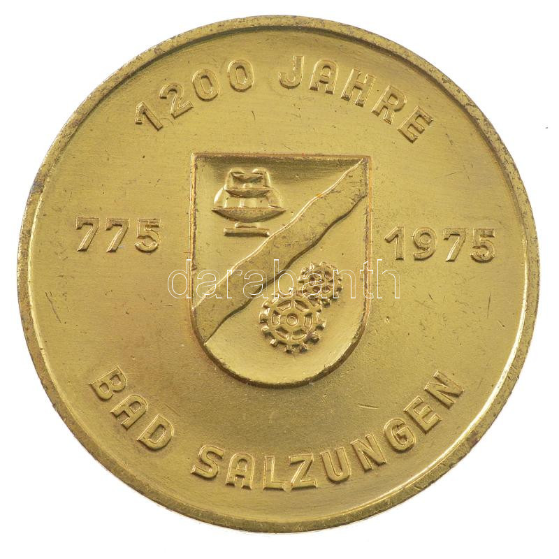 Német Demokratikus Köztársaság 1975. ‘Volkssolbad / Bad Salzungen 1200 éves’ kétoldalas aranyozott fém emlékérem (40mm) T:1- German Democratic Republic 1975. ‘Volkssolbad / Bad Salzungen 1200 years’ two-sided gold-plated metal