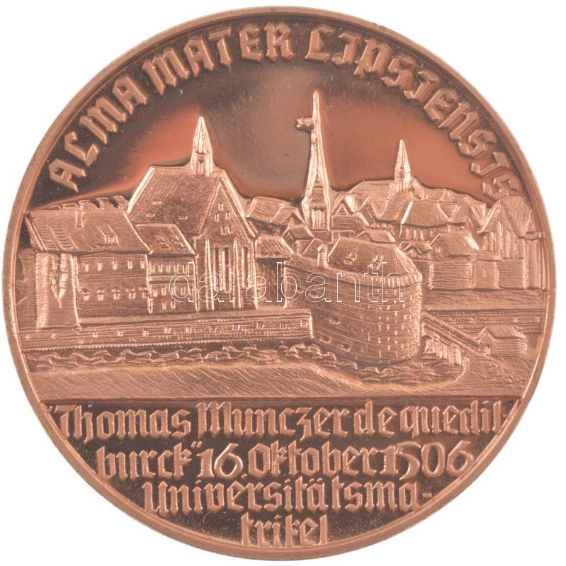 Német Demokratikus Köztársaság ~1980-1990. ‘Alma Mater Thomas Müntzer Stolberg’ kétoldalas bronz emlékérem (40mm) T:1- German Democratic Republic ~1980-1990. ‘Alma Mater Thomas Müntzer Stolberg’ two-sided bronze commemorative medallion (40mm) C:AU<a