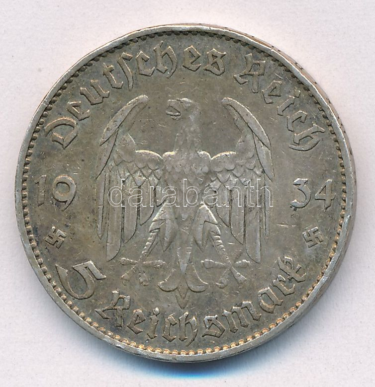 Német Harmadik Birodalom 1934F 5M Ag ‘Garnisonkirche’ T:2 patina German Third Reich 1934F 5 Reichsmark Ag ‘Garnisonkirche’ C:XF patina Krause KM#83<a href="https://www.darabanth.com/hu/gyorsarveres/435/kategoriak~Numizmatika/Kulfoldi-fem-es-ezustpen