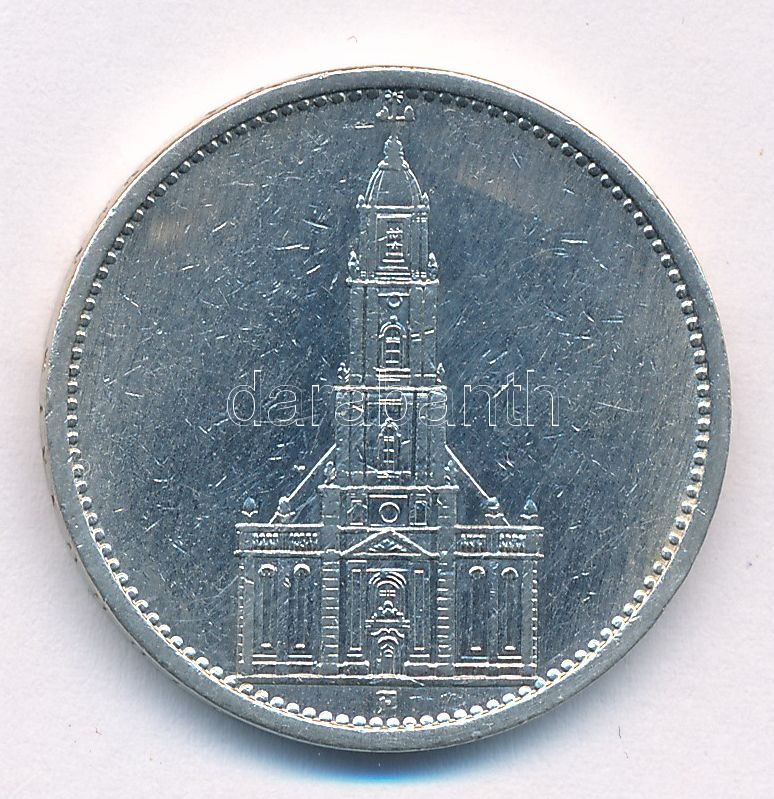 Német Harmadik Birodalom 1935A 5M Ag ‘Náci hatalom első évfordulója / Potsdami Garrison templom’ T:2,2- German Third Reich 1935A 5 Mark Ag ‘The 1st Anniversary of Nazi rule / Potsdam Garrison Church’ C:XF,VF Krause KM#83<a href="https://www.darabant