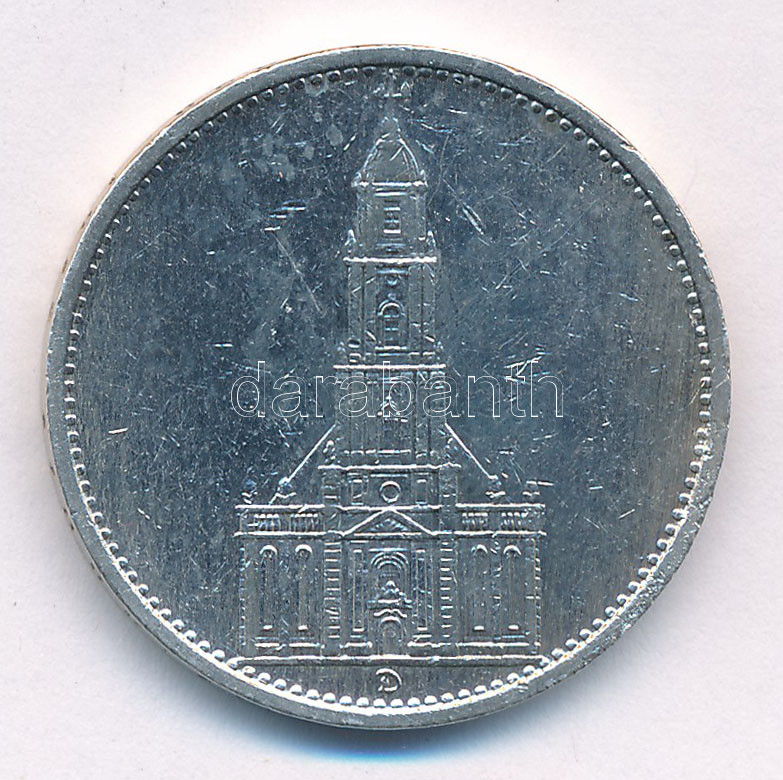 Német Harmadik Birodalom 1935D 5M Ag ‘Náci hatalom első évfordulója / Potsdami Garrison templom’ T:2,2- German Third Reich 1935D 5 Mark Ag ‘The 1st Anniversary of Nazi rule / Potsdam Garrison Church’ C:XF,VF Krause KM#83<a href="https://www.darabant