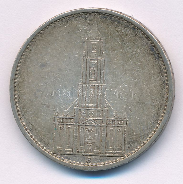 Német Harmadik Birodalom 1935G 5M Ag ‘Garrison templom’ T:XF,VF patina German Third Reich 1935G 5 Mark Ag ‘Garrison Church’ C:XF,VF patina Krause KM#83<a href="https://www.darabanth.com/hu/gyorsarveres/438/kategoriak~Numizmatika/Kulfoldi-fem-es-ez
