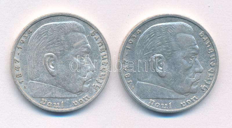 Német Harmadik Birodalom 1936A 5M Ag ‘Hindenburg’ (2x) T:2 German Third Reich 1936A 5 Mark Ag ‘Hindenburg’ (2x) C:XF Krause KM#86<a href="https://www.darabanth.com/hu/gyorsarveres/436/kategoriak~Numizmatika/Kulfoldi-fem-es-ezustpenzek~2500002/Nemet-
