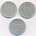 Német Harmadik Birodalom 1936D 5M Ag ‘Hindenburg’ (3x) T:2 kis patina German Third Reich 1936D 5 Mark Ag ‘Hindenburg’ (3x) C:XF small patina Krause KM#86<a href="https://www.darabanth.com/hu/gyorsarveres/434/kategoriak~Numizmatika/Kulfoldi-fem-es-ez